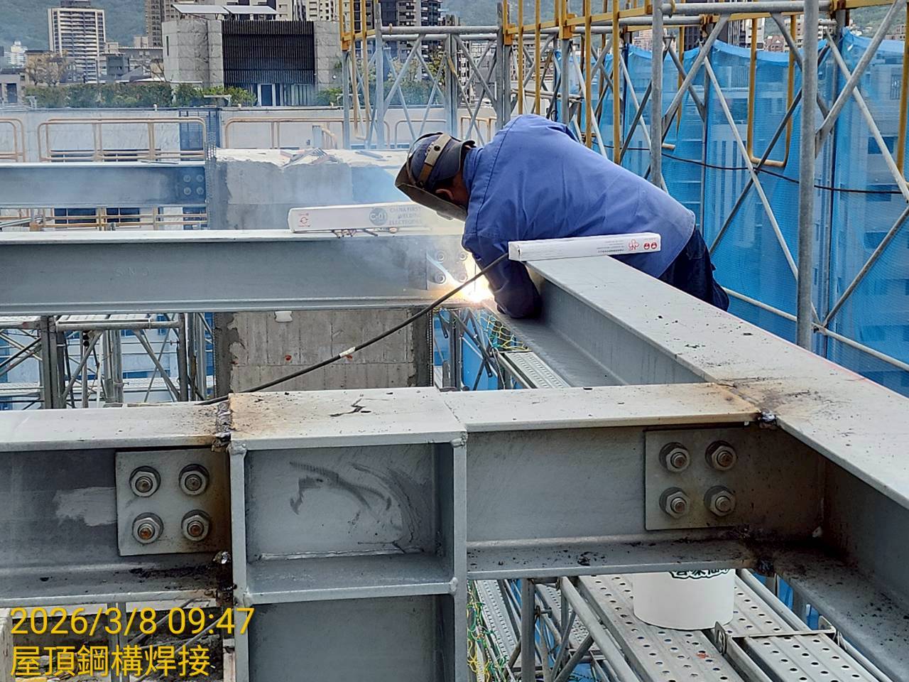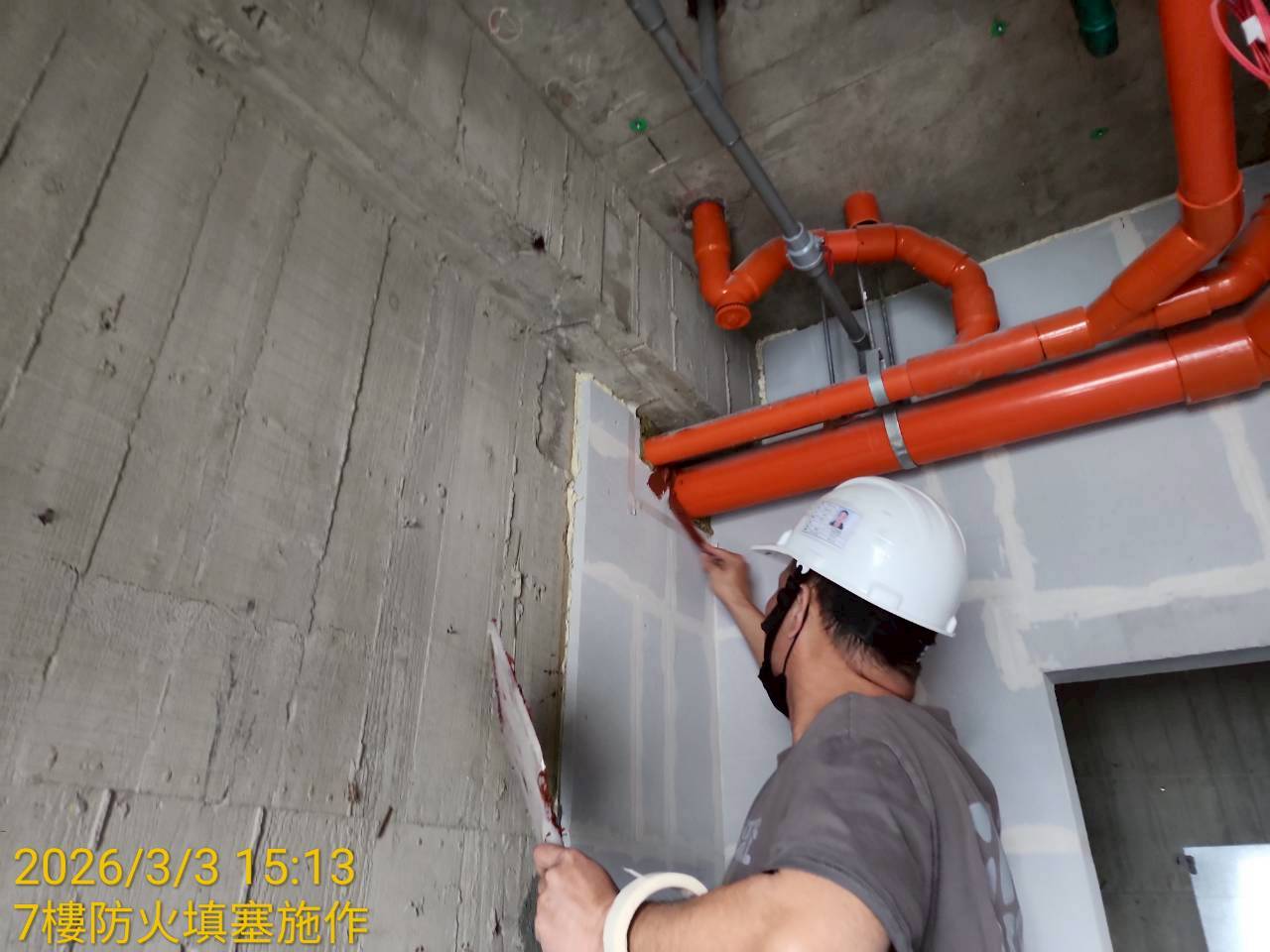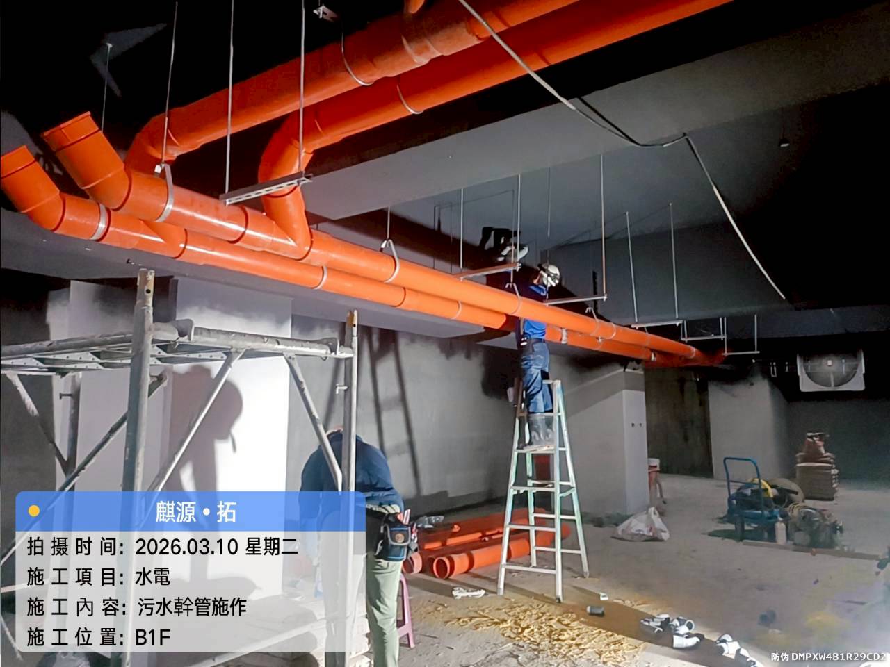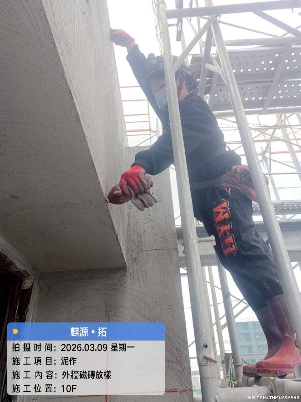 3F~6F 外牆貼磚|2F~5F 牆面油漆批土施工|5F~7F 坪頂研磨批土|8F~10F 外牆粉刷|6F 室內粉刷及屋突層室內粉刷 |B3F~B2F 室內坪頂噴漆|屋頂鋼構骨架施工|4F~6F 浴廁牆面磁磚施工